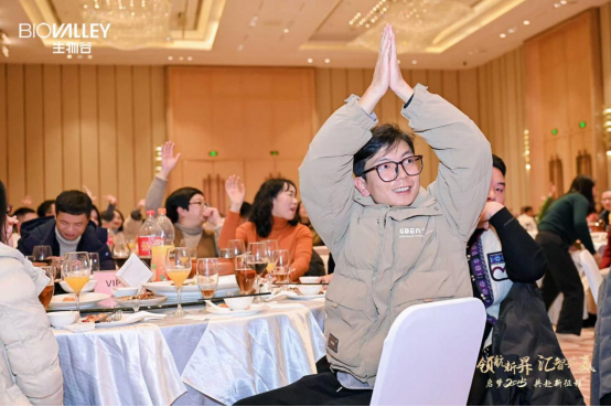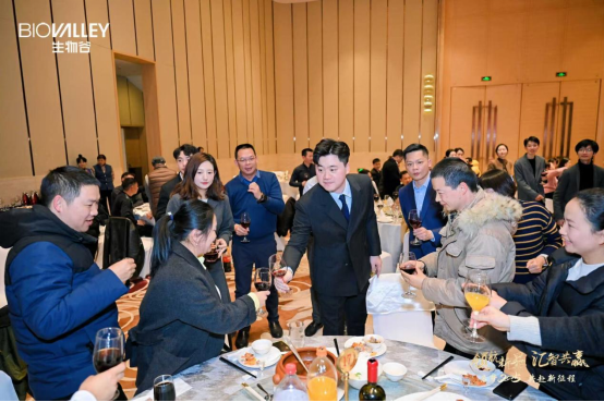隨后,董事長帶領管理團隊,向在場所有員工敬酒,并深切問候每一位同事,寄予美好祝福。希望大家和生物谷攜手并進,共創未來,書寫更加輝煌的新篇章。