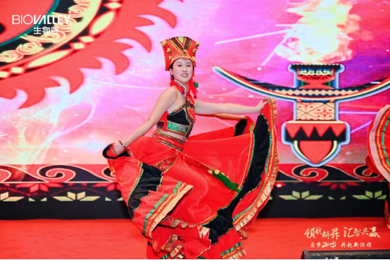 年會之上,舞臺流光溢彩、節目精彩紛呈。開場以云南特色太陽鼓舞拉開恢弘序幕。舞者身姿矯健,用力量之美點燃現場。一聲聲鼓樂振奮人心,一句句吶喊響徹會場,預示著生物谷藥業未來征程廣闊浩瀚。